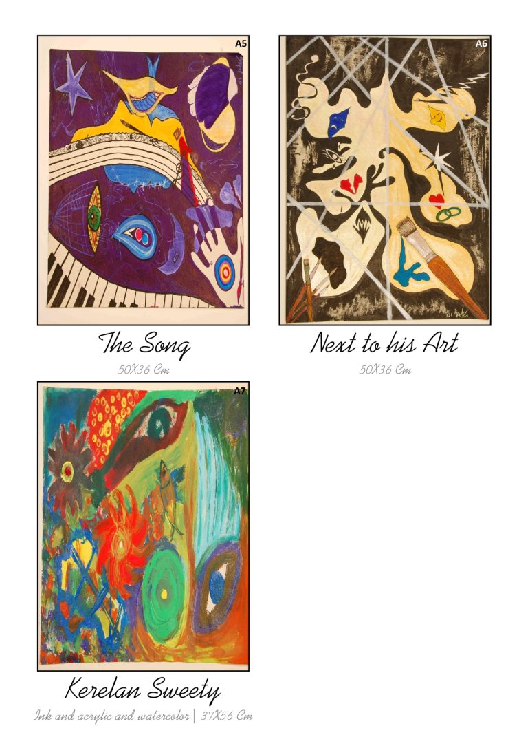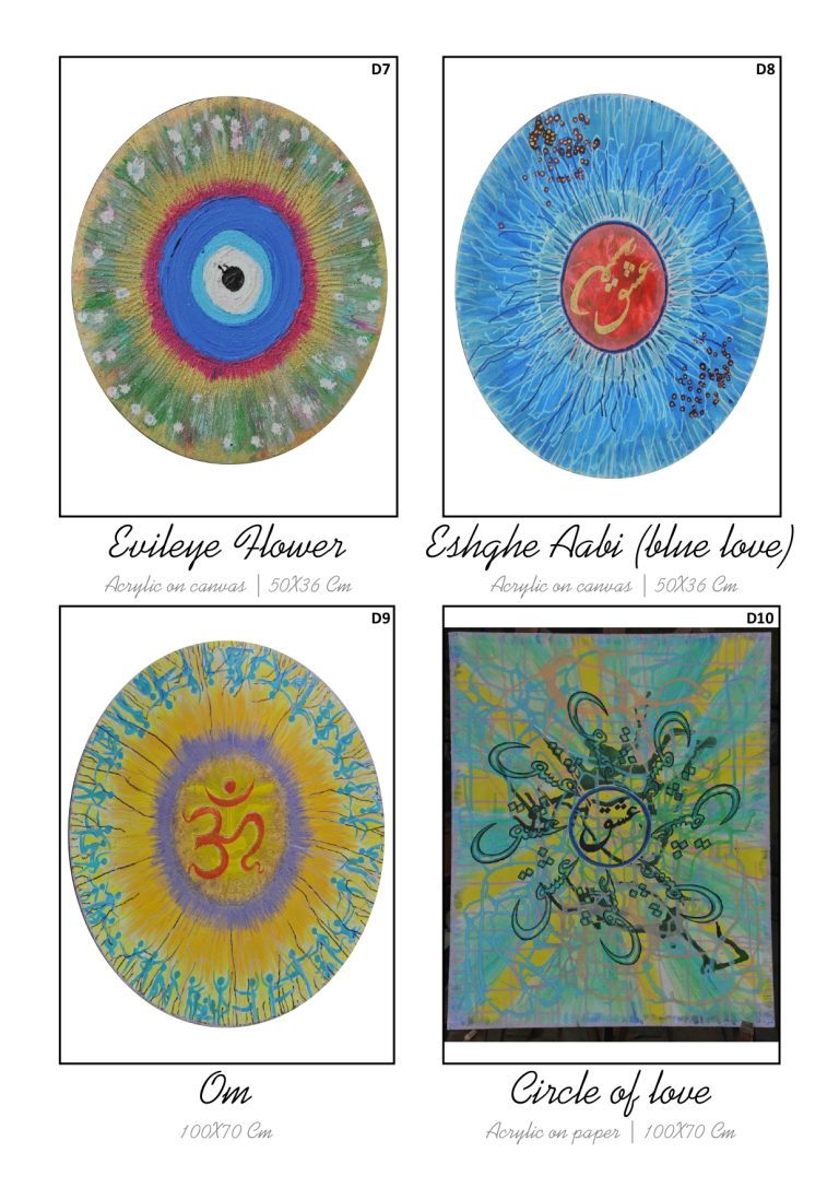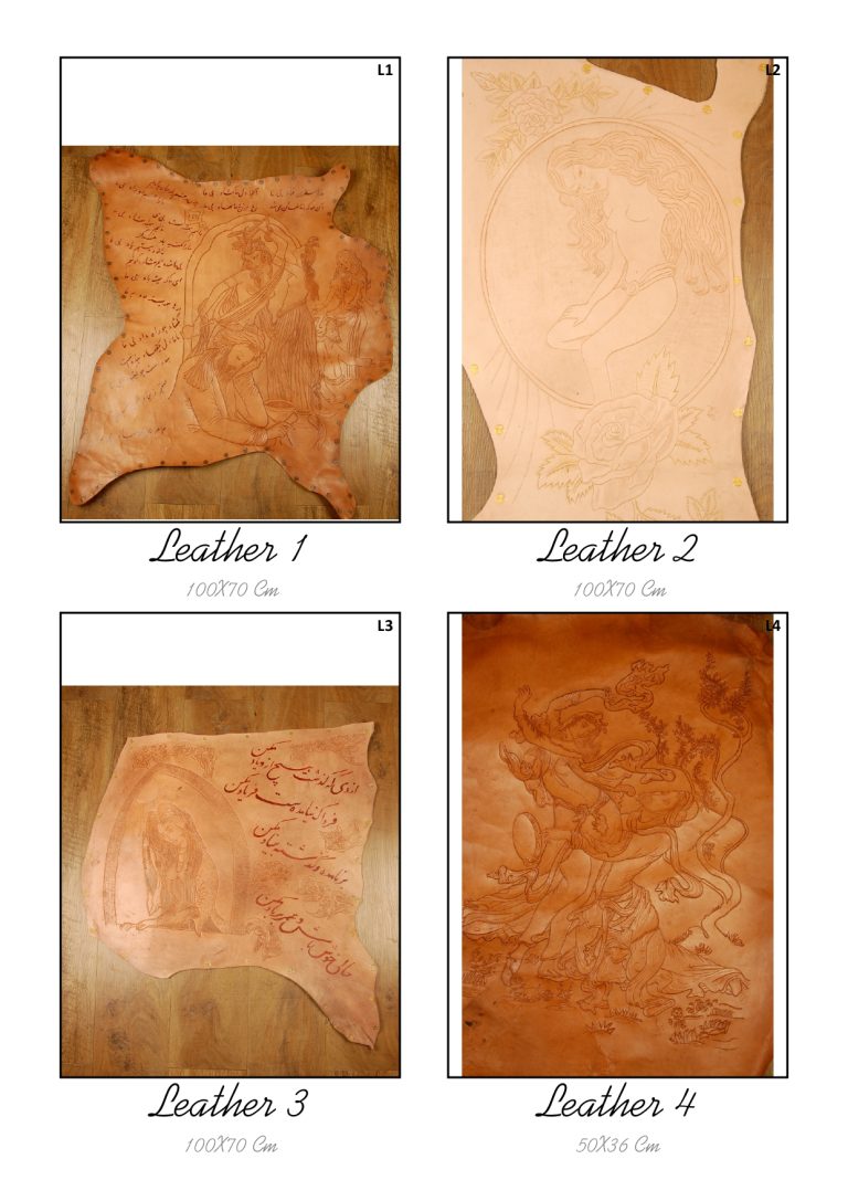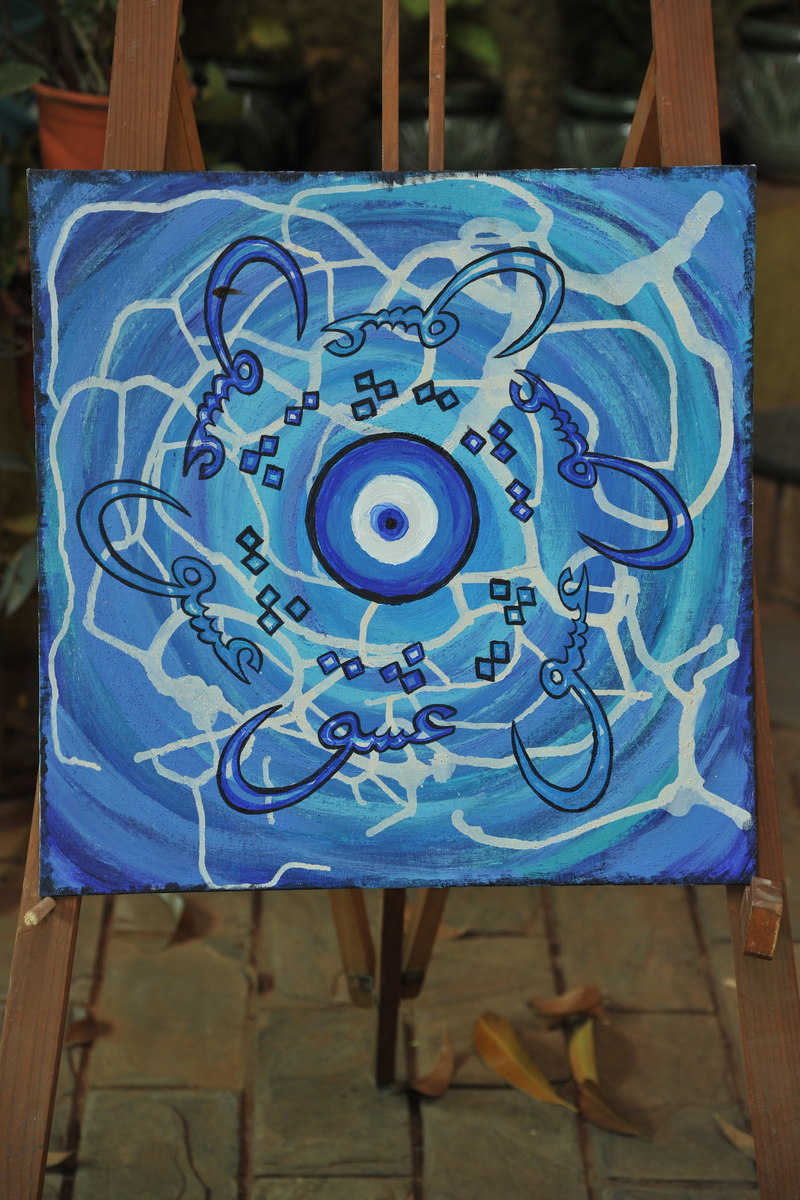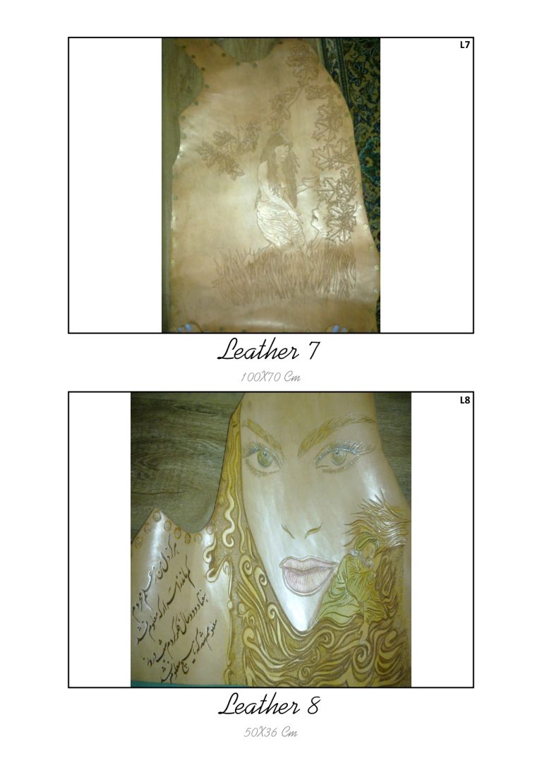 She works across oil, acrylics, watercolors, ink, pencil, chalk, and coal — shifting mediums like moods. Her repertoire also includes rare forms such as Persian miniature carvings combined with calligraphy of Rumi and Hafez, etched and painted on leather — a craft few, if any, practice today.